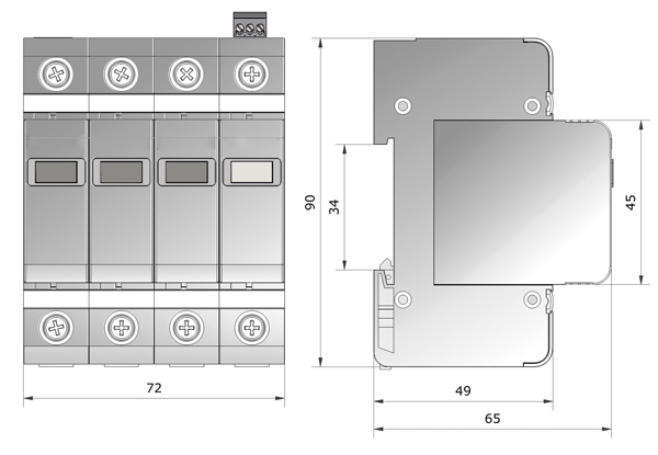 Fully pluggable surge protective arrester type 2 (class II) for the use in three-phase TT and TNS systems.